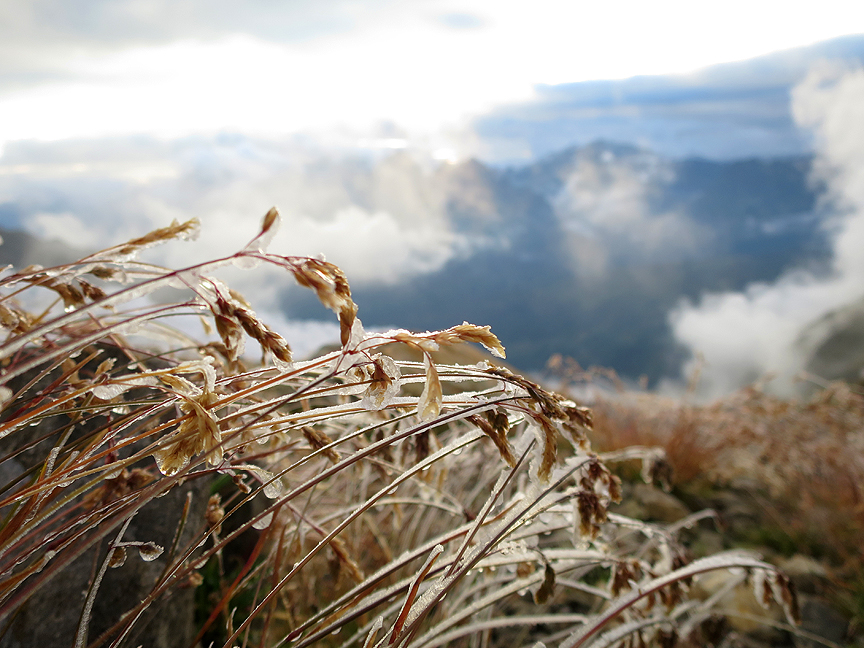 Rime-frosted grass near the Albert 1er hut. |