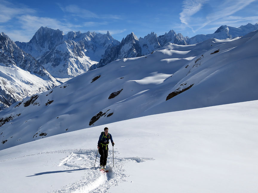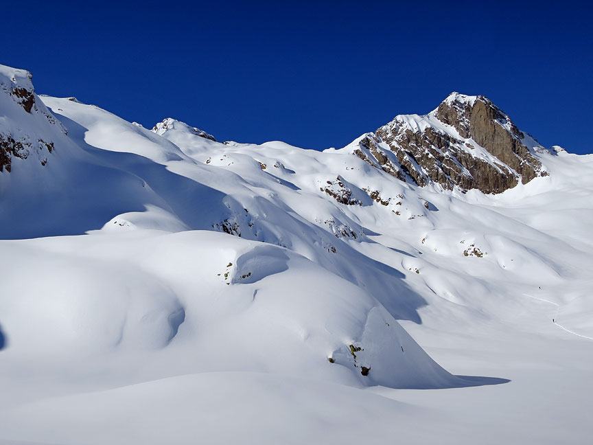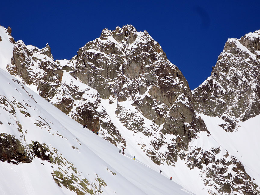 The view as we head for the gully on the Crochues. Lots of folks. Simply too many given all the new snow. |