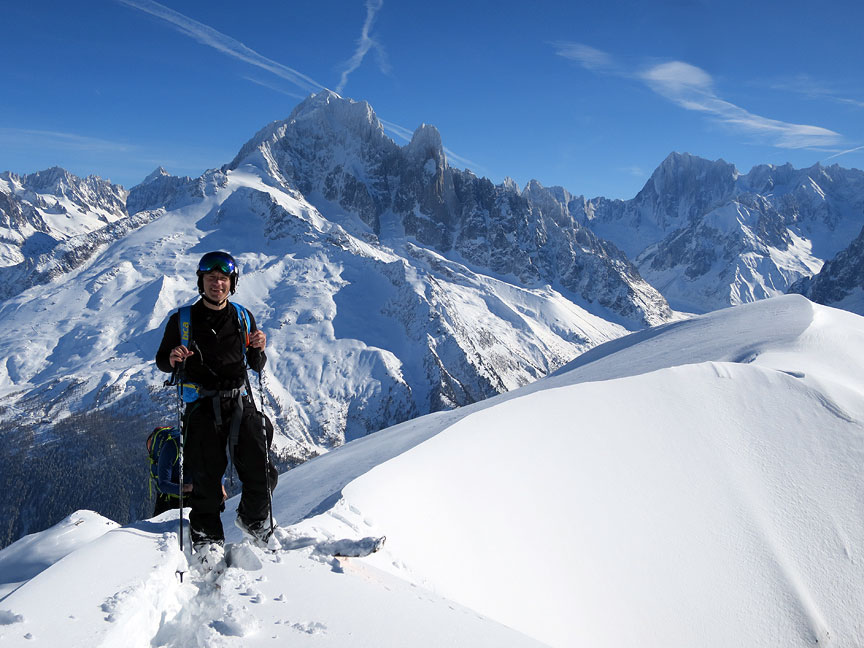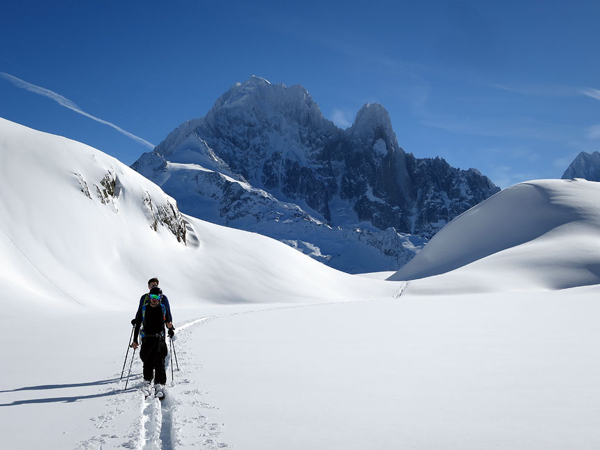 Our original plan was to do the Crochues-Berard traverse. But lots of recent snow and over-crowding on the approach gully forces a last minute change of plan. Here we are on "plan B". |