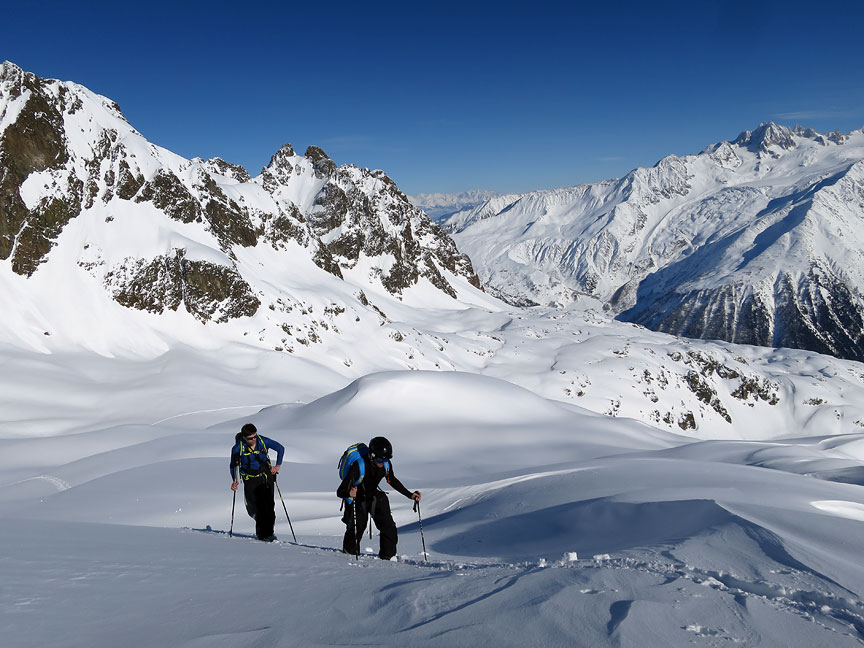 Other skiers heading up towards the Col du Belvedere. |