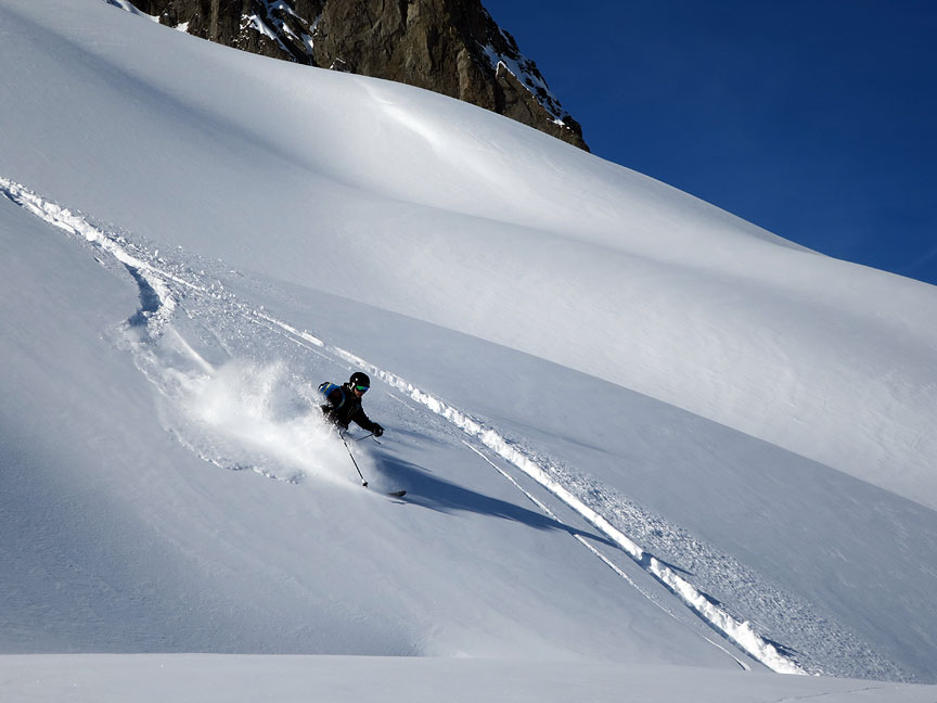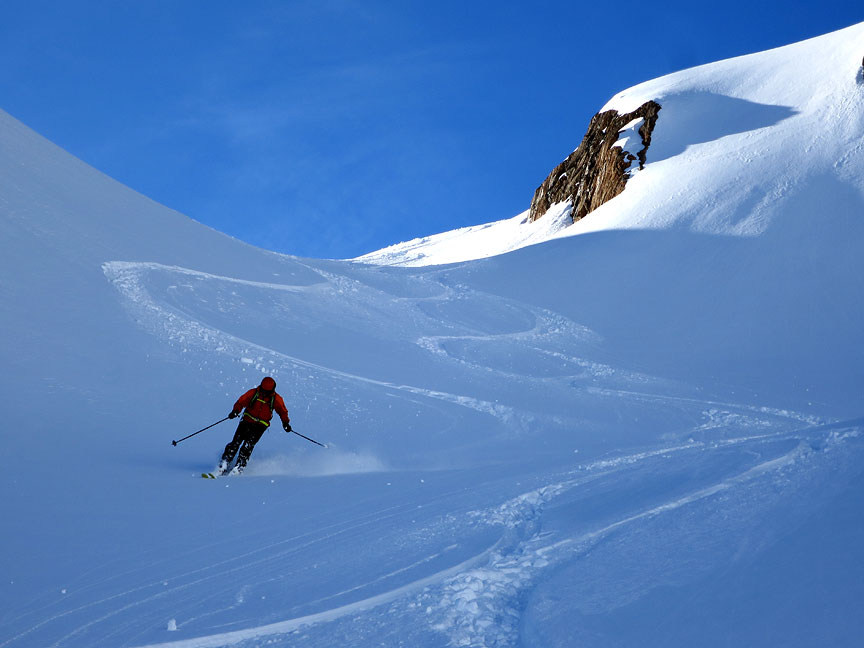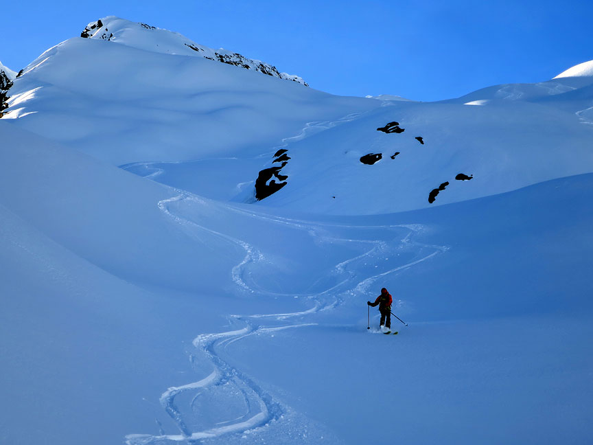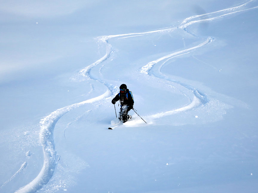 Jon telemarks his way down the fluff. |