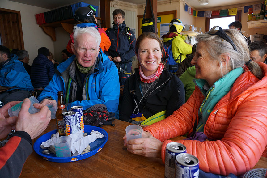 Ducking in out of the cold wind for lunch at the Requin hut. |