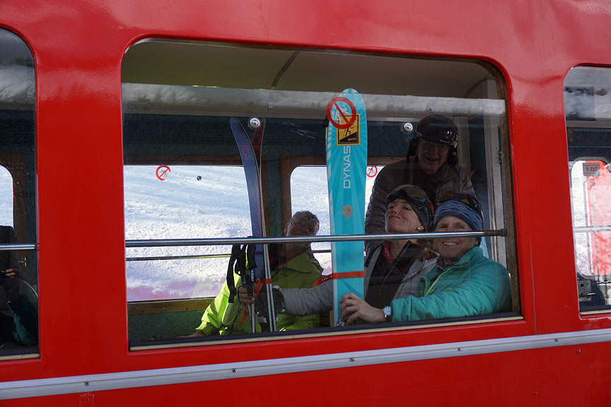 And feeling rather pleased with ourselves, we rode the Montenvers train home! Thanks to Bill, John and Jean Anne for another great day on the Vallée Blanche. |