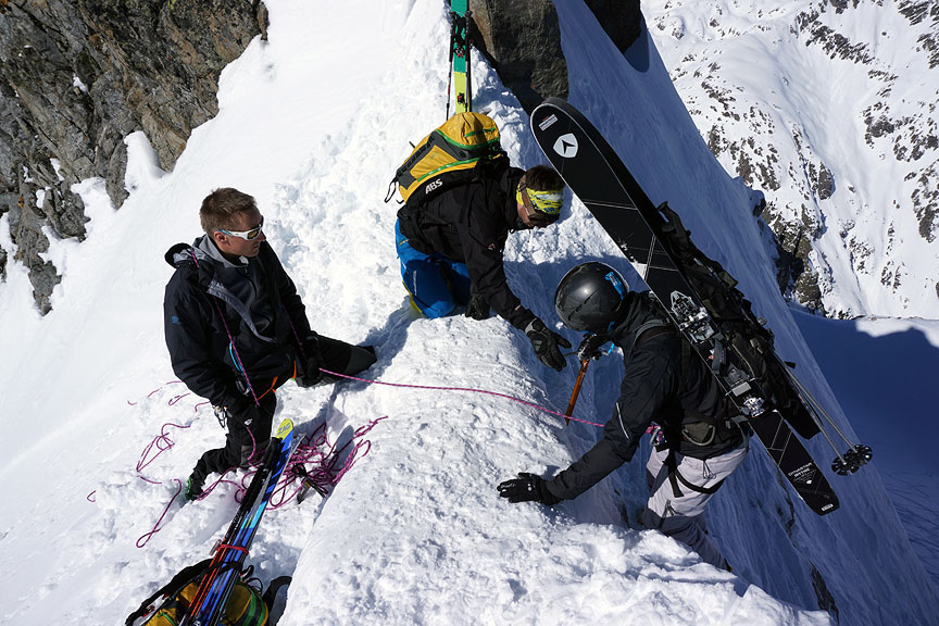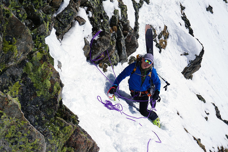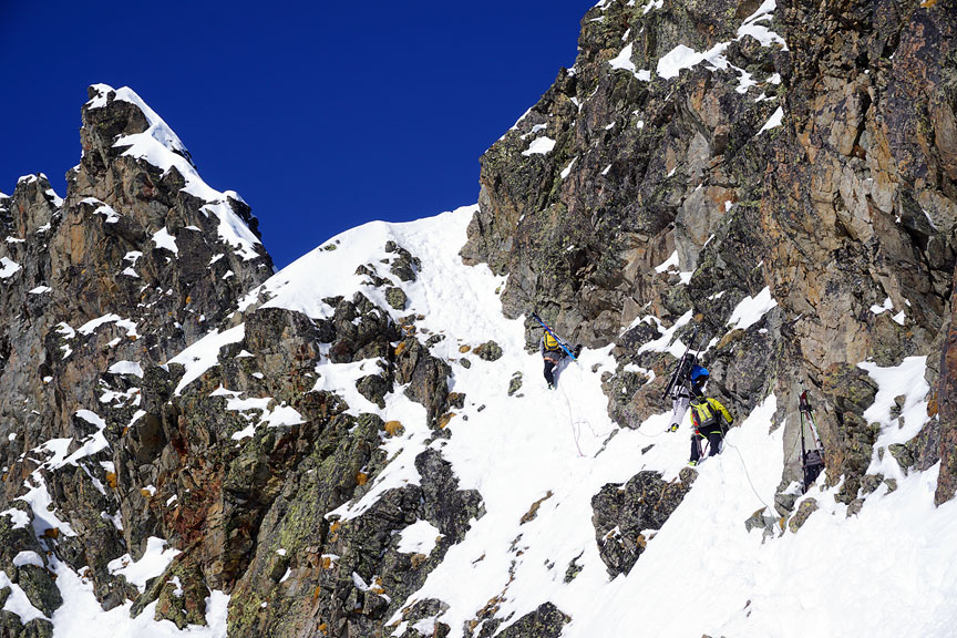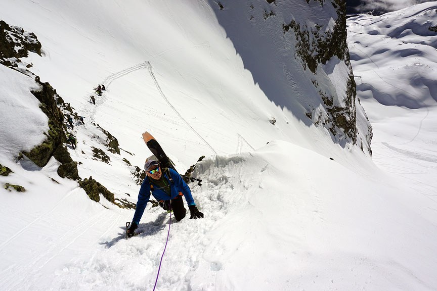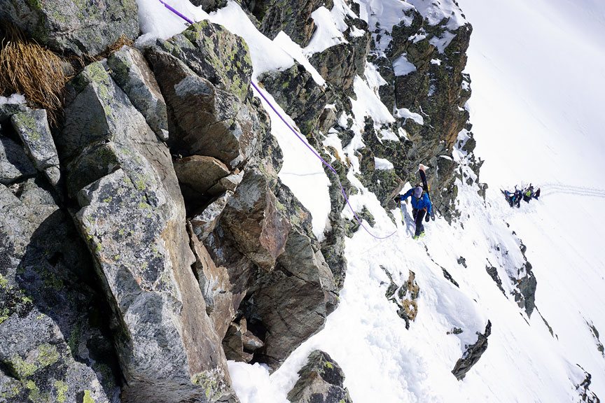 The route was in good condition with a comforting track. Even so, we roped up. |