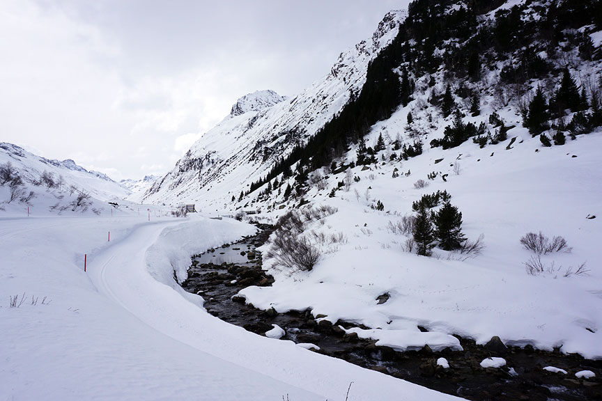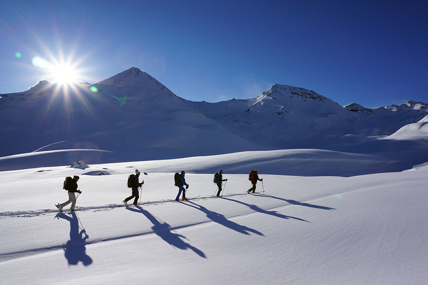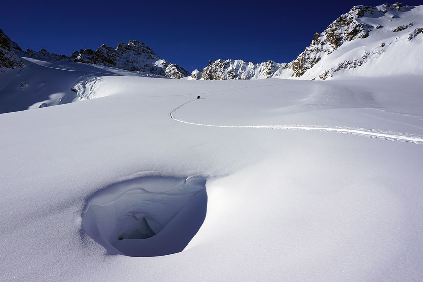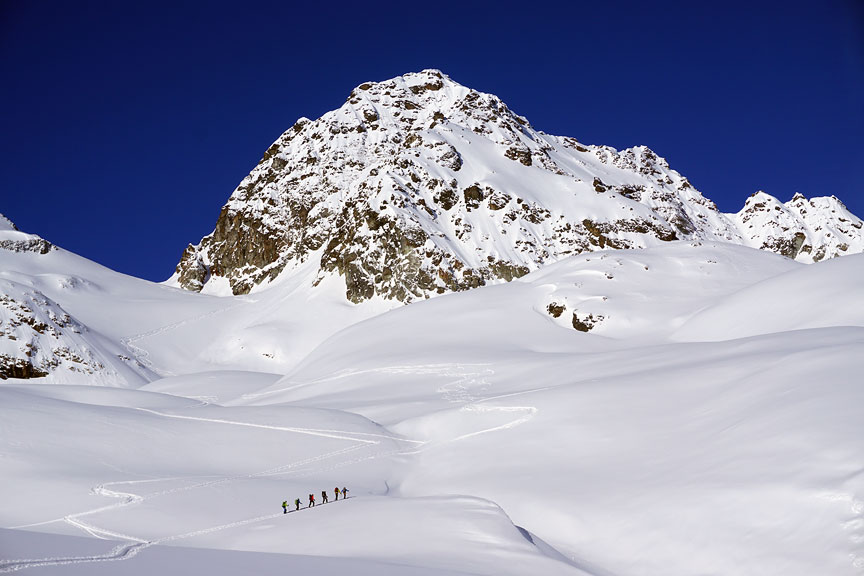 Despite the wind of previous days, we did find some nice snow on our descent toward the Jamtal hut! |