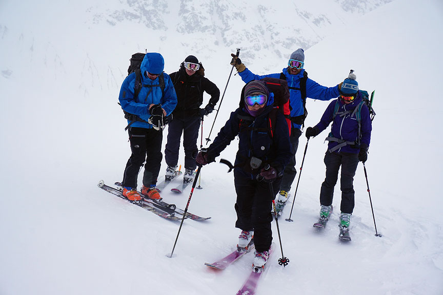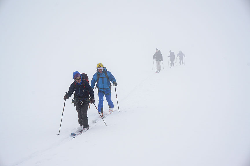 There is no way to sugar coat the description of this snow, some of the most challenging we've skied, and in very difficult visibility as well. Luckily all were strong and skilled skiers. |
