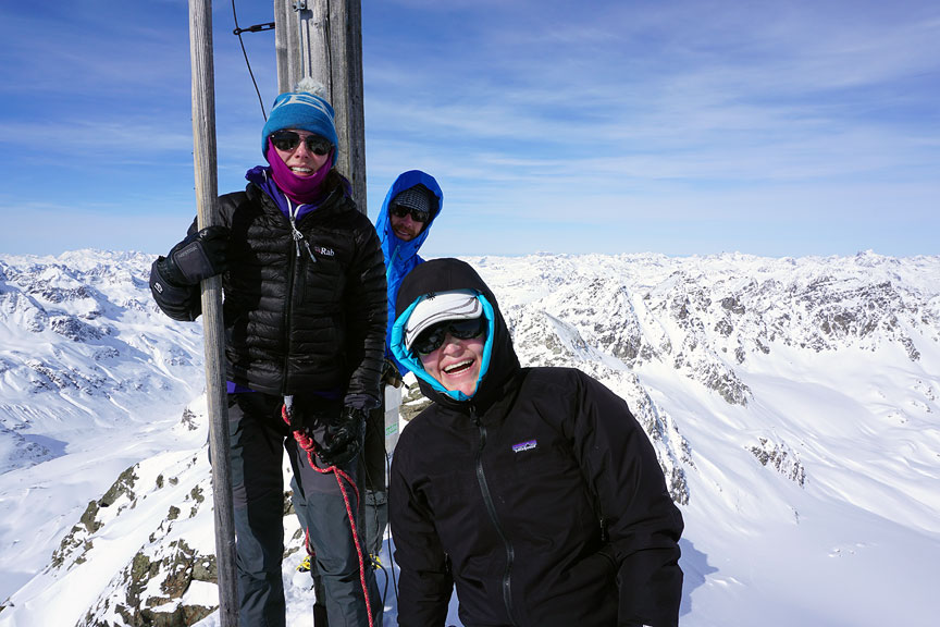 Another high point in another wind-swept and bitter cold situation. But still smiling, mostly! |