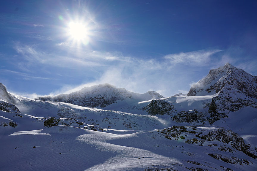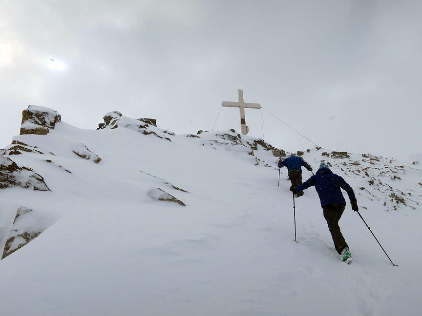 We did not climb the peak. It was enough of an environmental challenge to ski safely down again over wind slabby slopes. |