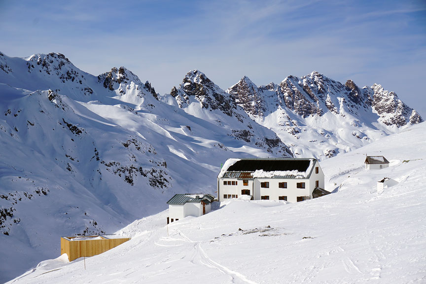 And arrive at the Jamtal hut in time for an hour or so of sun on the terrace. |