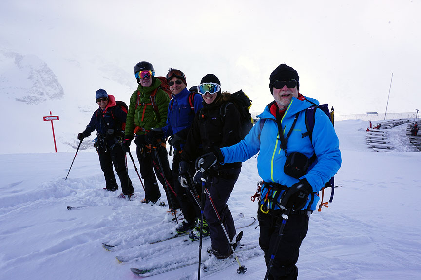 Day 4, and we're ready for more. Again, bad stability and incoming weather dictated caution and we prepare to move on to the Kesch hut by the conservative "normal" route. |