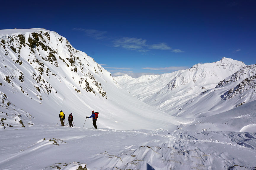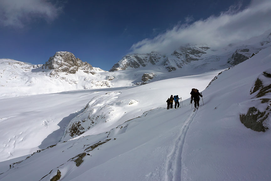 Nearing the top of our "run" at the base of Piz Kesch. |