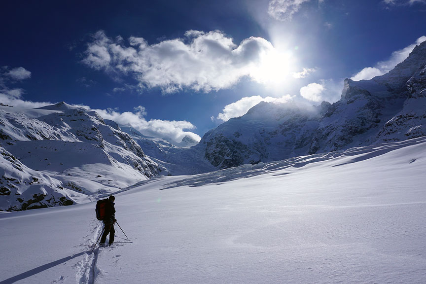 Looking back up the Morteratsch Glacier, ours are the only tracks out today! |