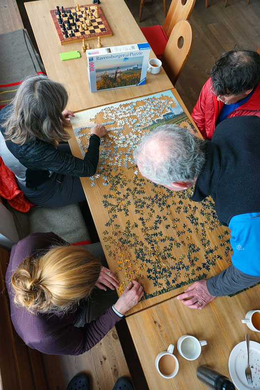Afternoon hut activities kept us more than occupied. The hutkeeper, Reto, even put on a movie for us! |