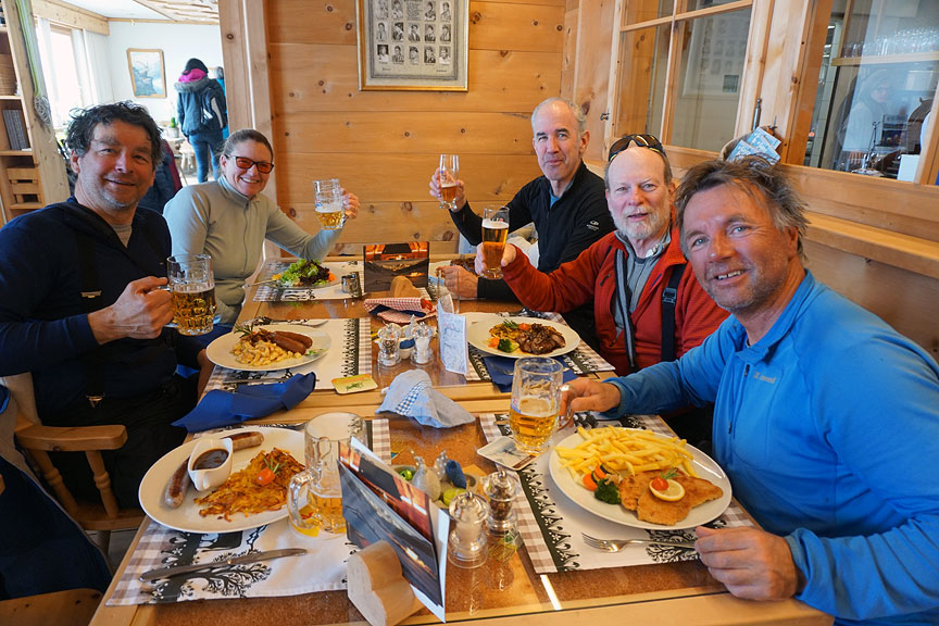 And at the journey's end, because it's Switzerland of course, is rösti, schnitzel, bratwurst, and beer! All in a charming ambience. Thanks to the team for their good humor, strong efforts, and company! Cheers, and may we meet again soon. |