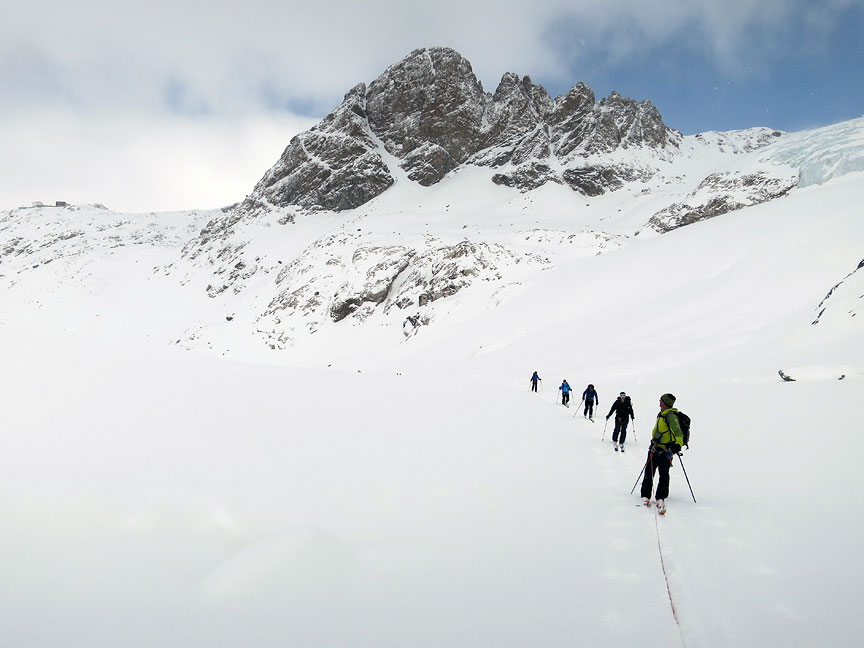 On day 2, we headed out into the back country. Goal number 1: the friendly and charming Jenatsch hut! |