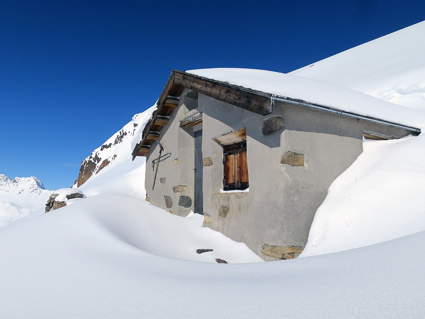 We pass by a hut that the Kesch hut keeper Ursina had mentioned, tucked away discreetly near the Sertig Pass, where she remembered happy holidays as a little girl with her parents. |