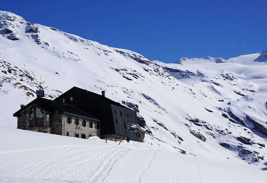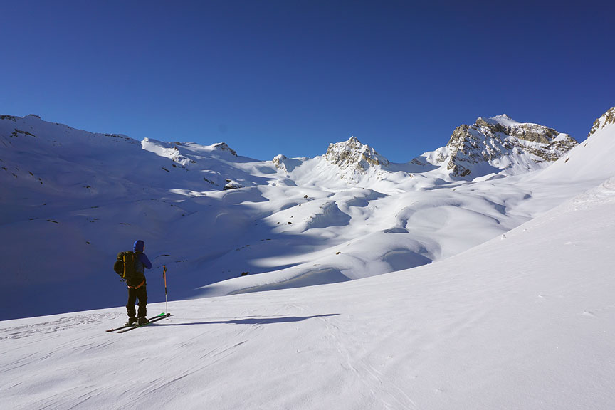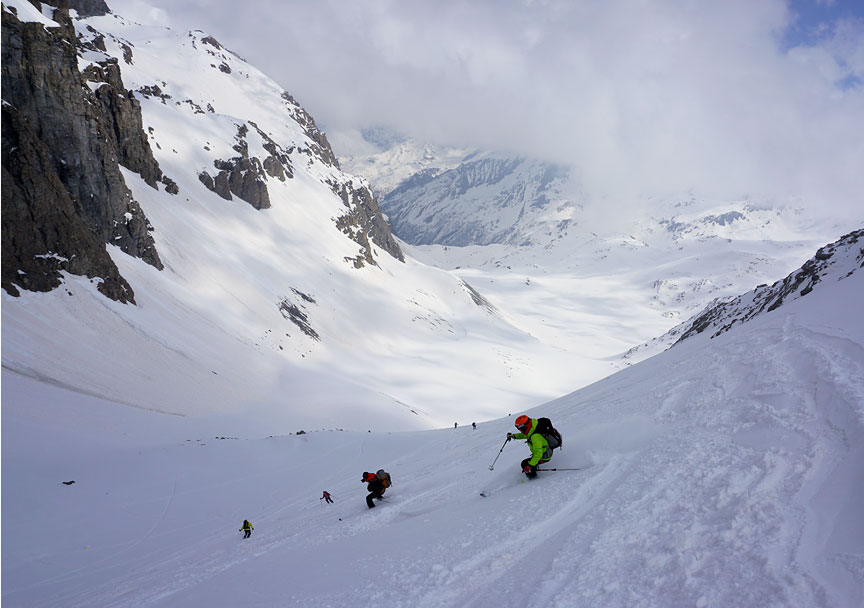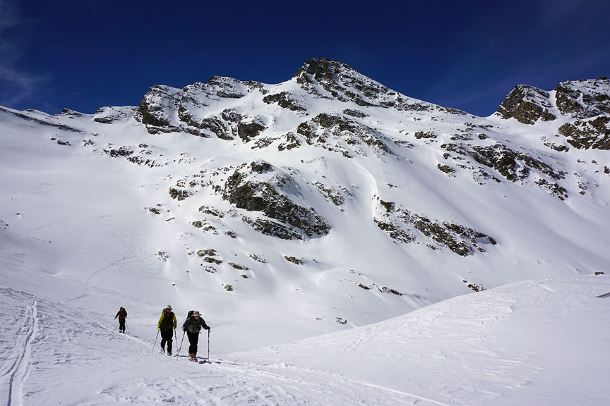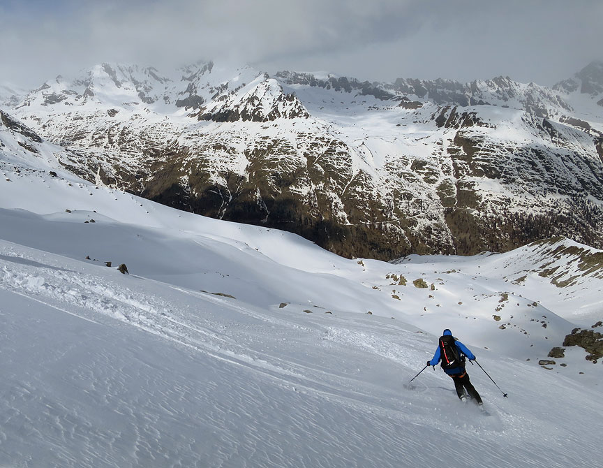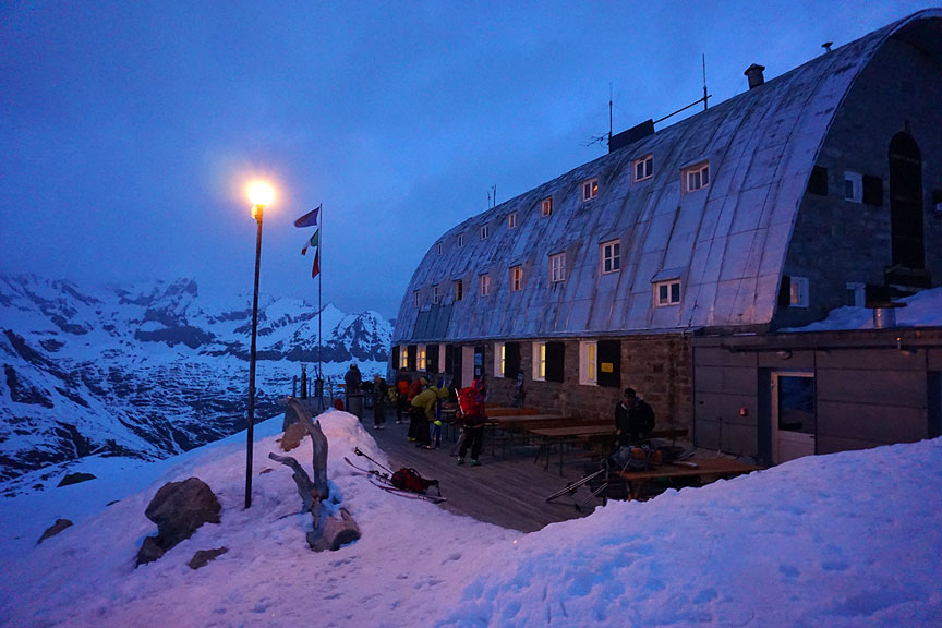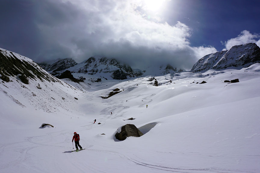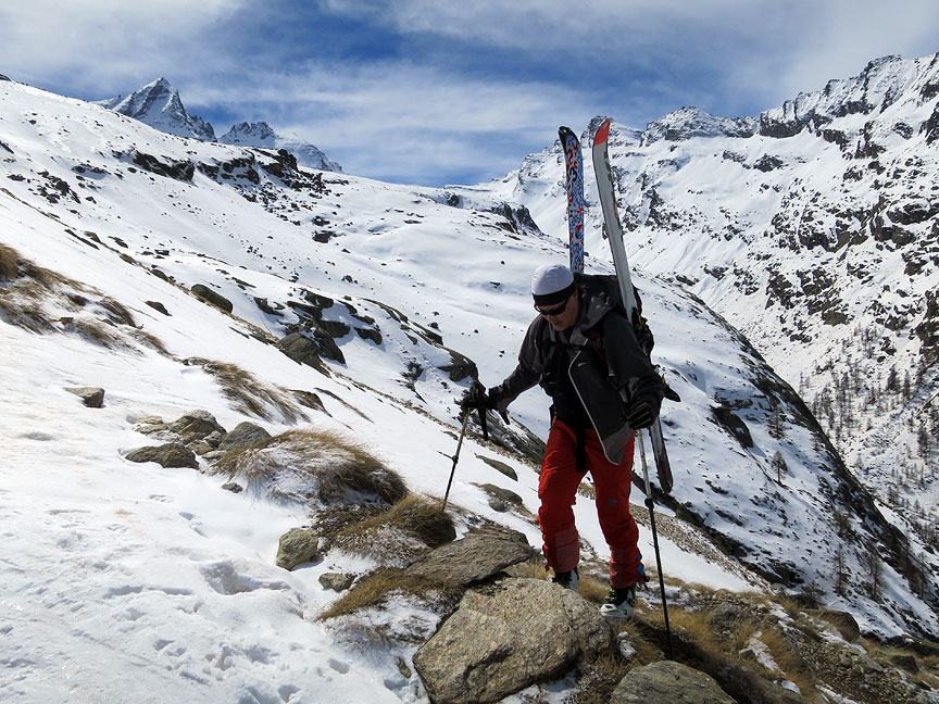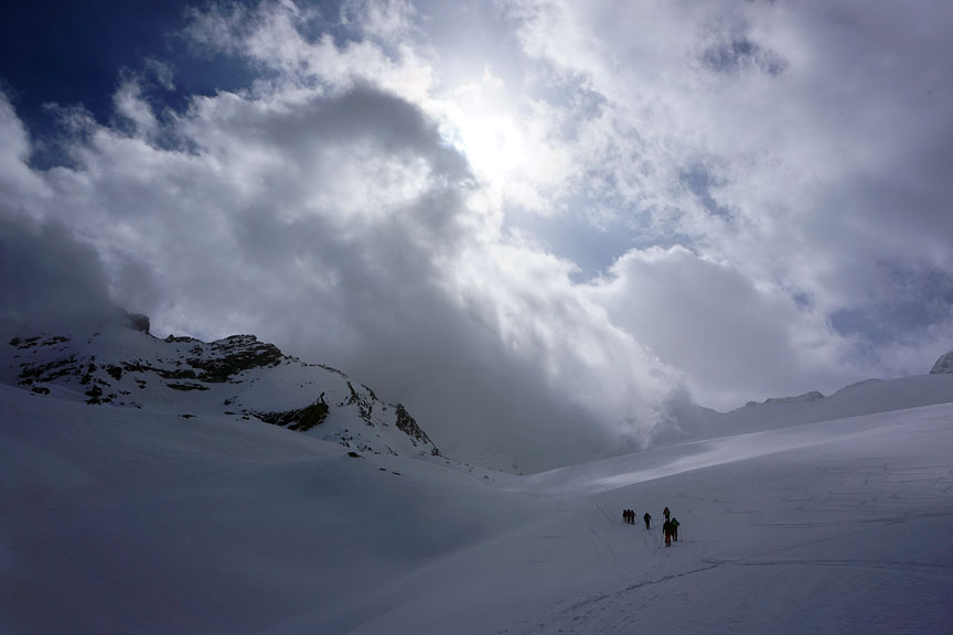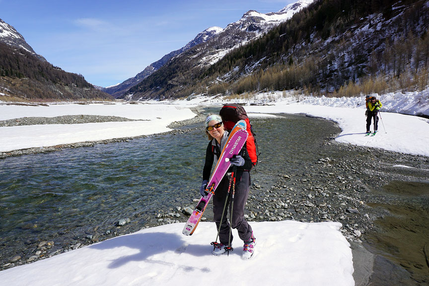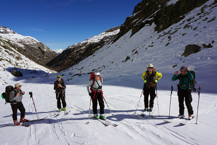 Our first day consisted of a long trek up the Valgrisenche to the Bezzi hut, in spring conditions. |