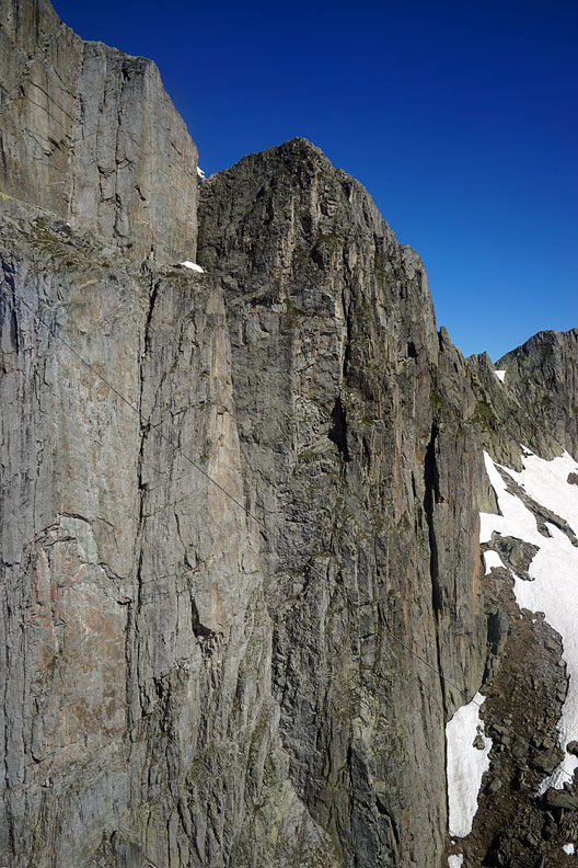 Day 3, Gini was up for a greater challenge, so we headed up the "Frison-Roche" route on the Brévent. Roll over to see the line. |