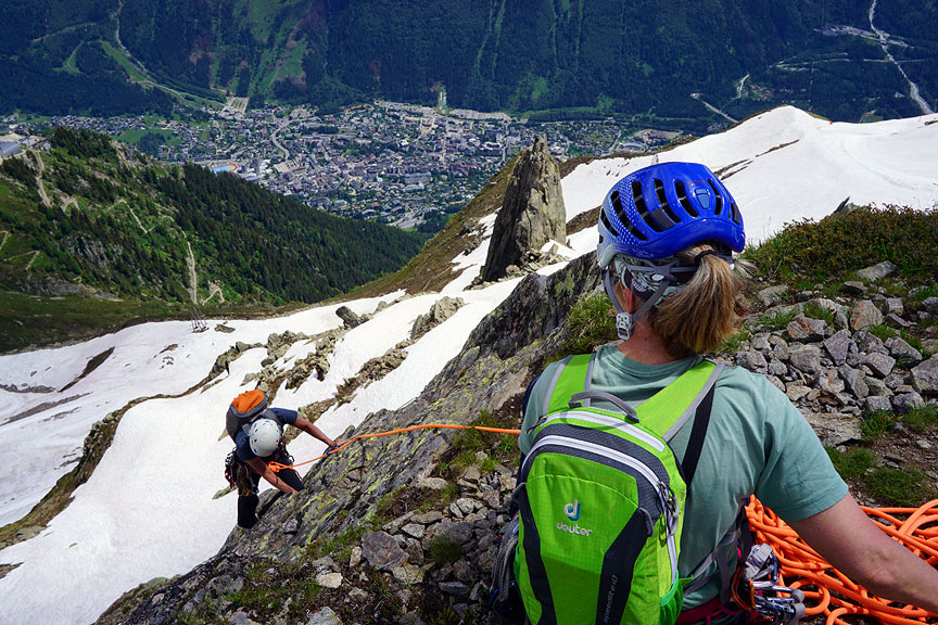 Gini and Gary were back in Chamonix this year, just like last year, to help us both usher in our summer guiding season with some pure fun rock climbing. They brought the summer with them, in fact! |