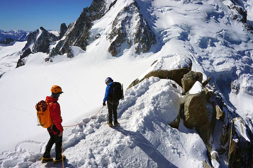 Rob Elliott was back in the Alps this summer, up to his usual non-stop athletic pursuits. He began with the Cosmiques Arête. |