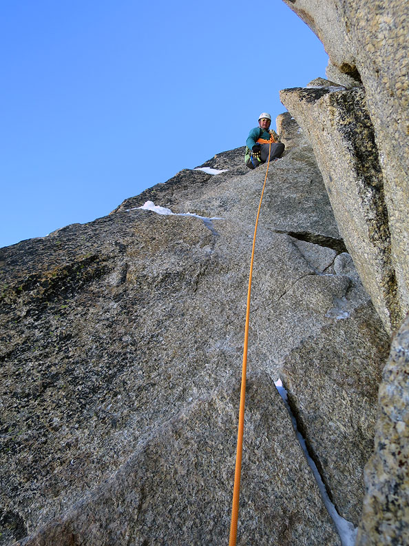 In the exit chimneys, snow and ice filled but very fun. |