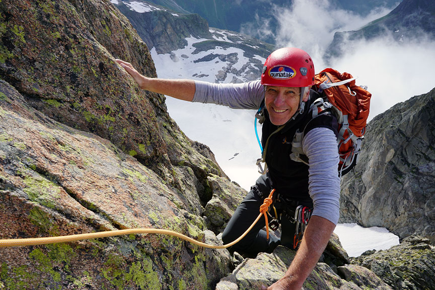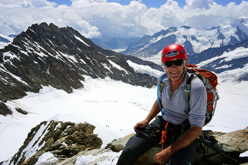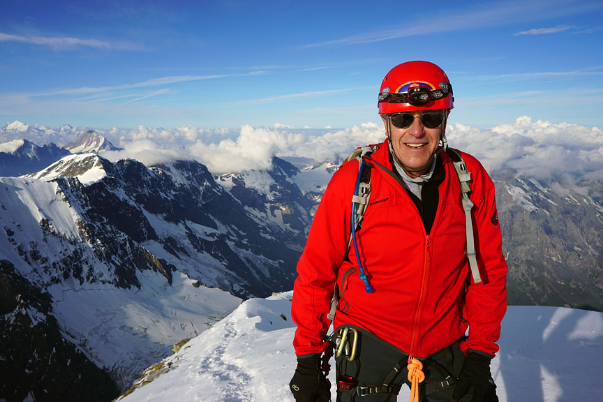 Mike, from Washington State, spent a good month in Europe this summer. And all together too brief part of that was climbing in the Alps. Our initial goals included the Mönch, Jungfrau and Eiger. We were partly successful in achieving them, but some poor weather and new snow require a modification in plans. |