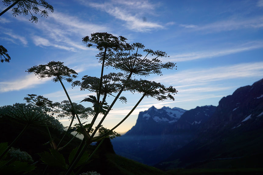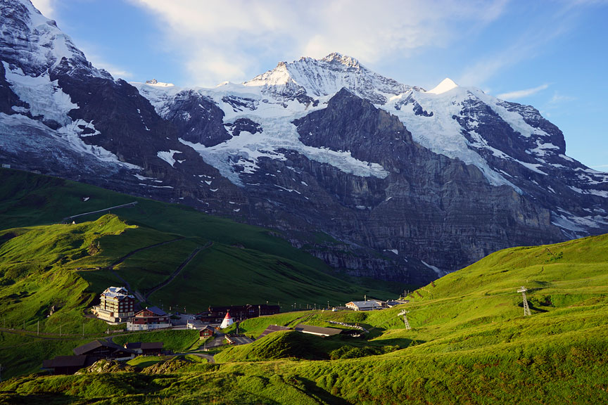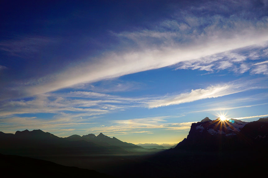 Sunrise over the Wetterhorn from Kleine Scheidegg. |