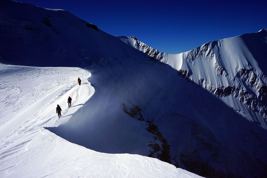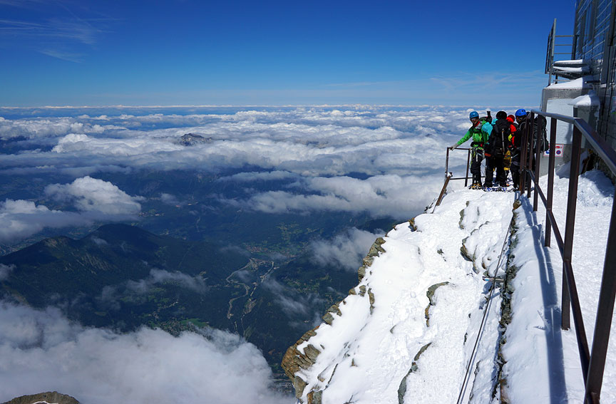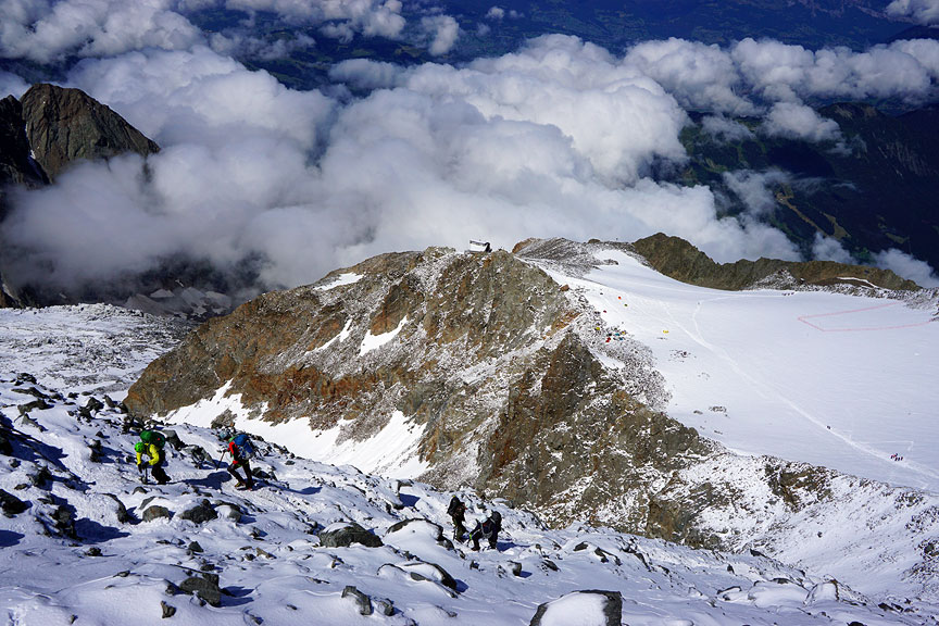 In spite of the winds, it was a busy day for Mont Blanc. |