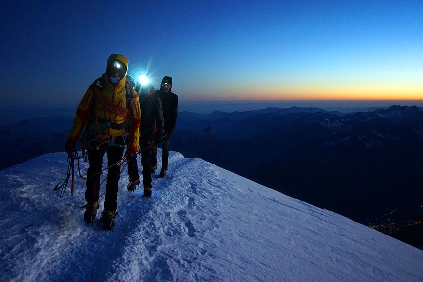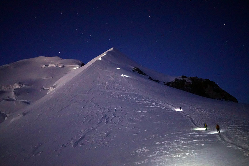 It was still dark by the time we got to the Vallot hut at 4362 meters. |