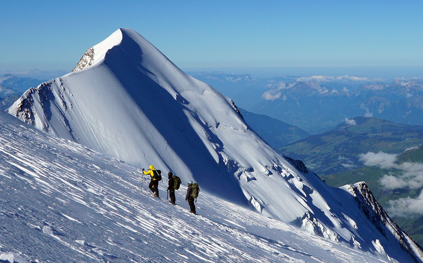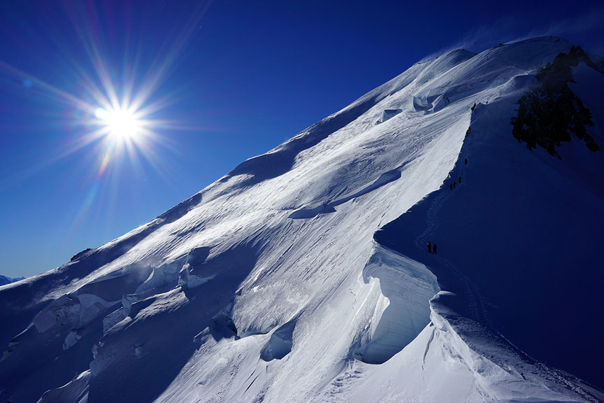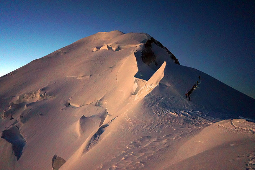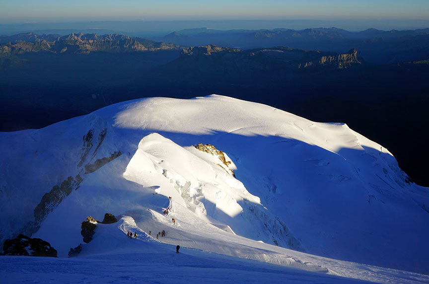 Climbers heading up the Dome du Gouter. The Aiguille Bionnassay behind. |