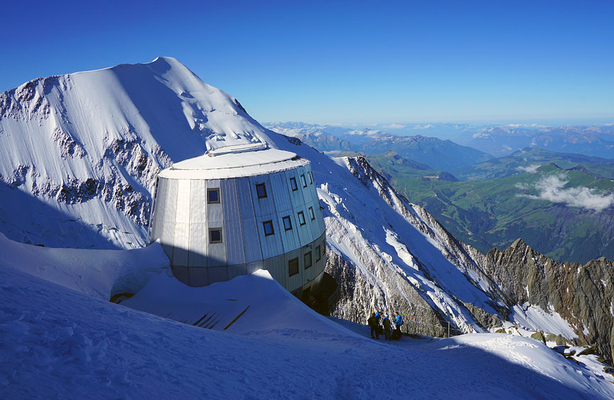 Looking back up towards the summit as we descend past the Refuge Vallot. |