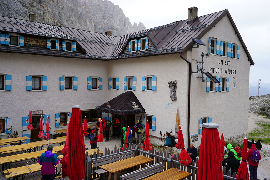 Looking back up and the Vajolet Towers. Mouse over to see the line. |