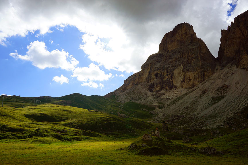 We continued on down the South Ridge, over all the other fingers. Finally we had a pleasant walk back down to the car at the Sella Pass. |