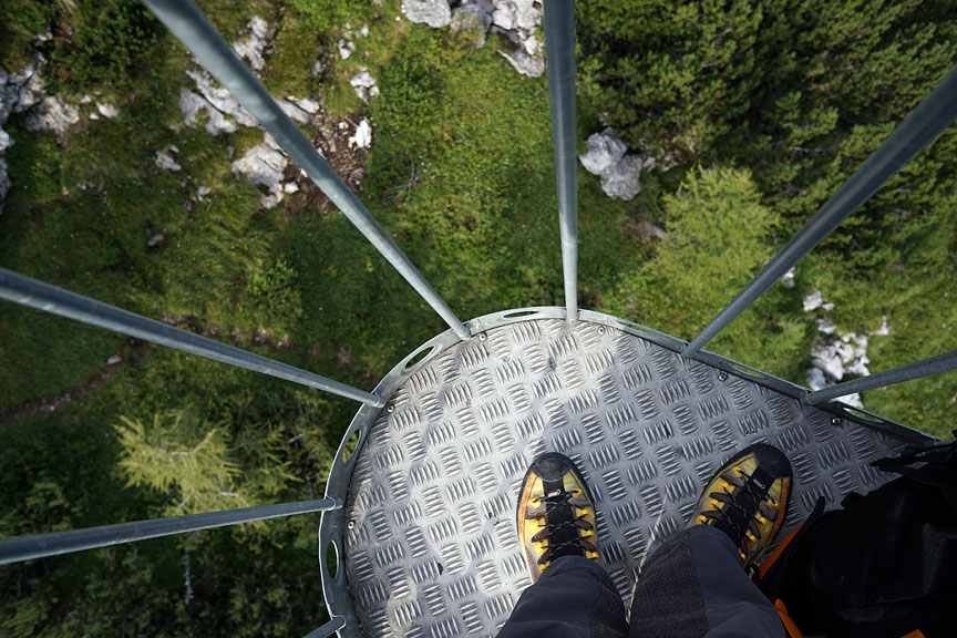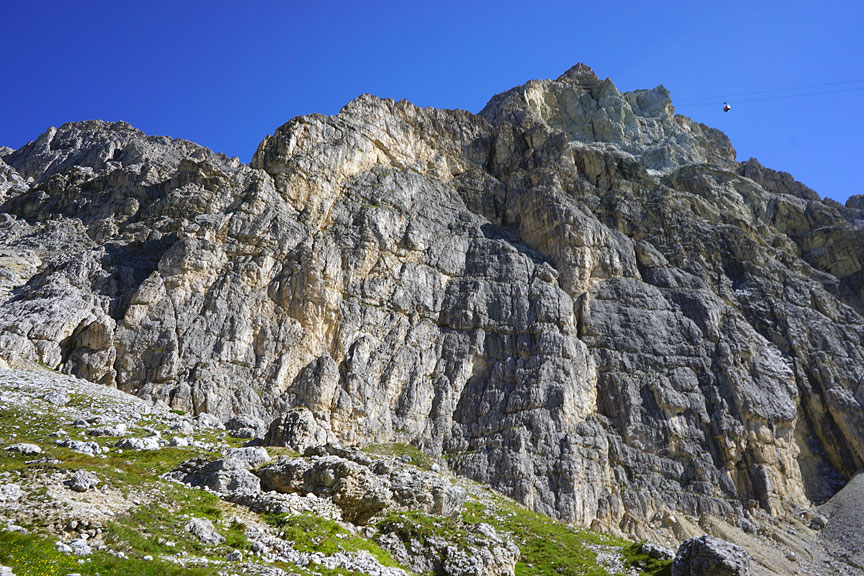 The climb ends abruptly on the shoulder of the Lagazuoi. |