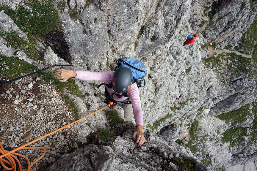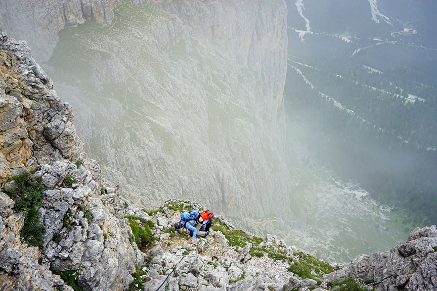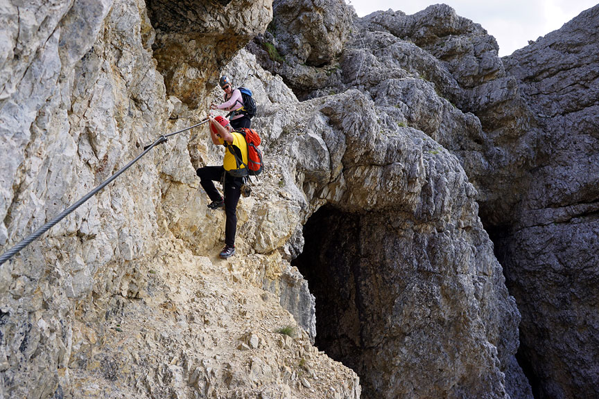 Our second climb was the Via del Buco, the Piccolo Lagazuoi. Mouse over the see the line. |