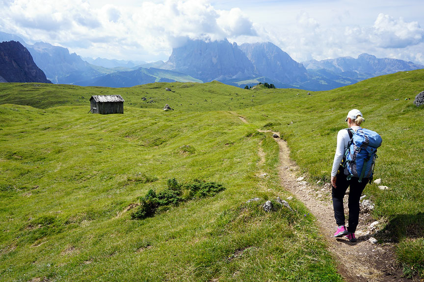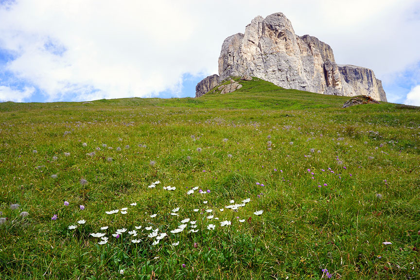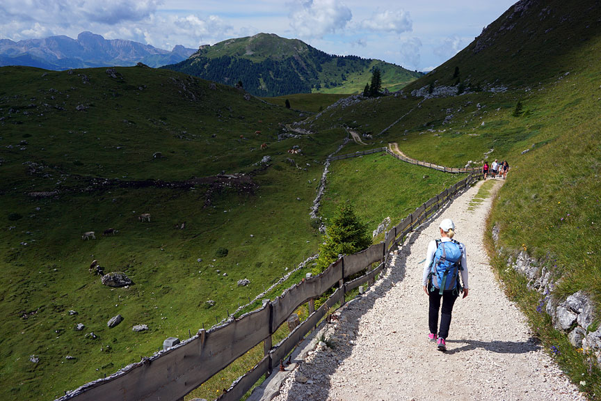 A beautiful day, hiking up from the car park at the Passo de Valparola. |