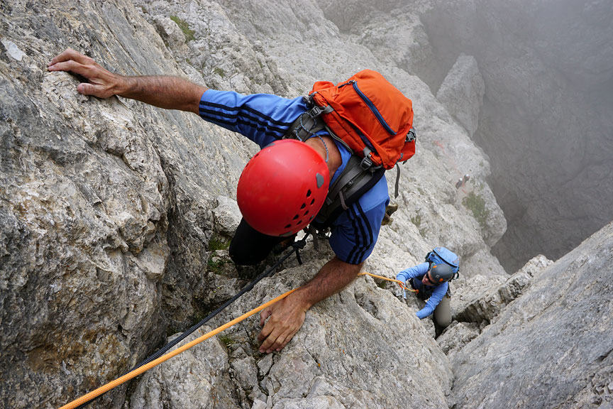 Our last day was pent in the Sella Towers. We climbed the Freccia Route on the First Sella Tower, and then the Kostner on the Second. |