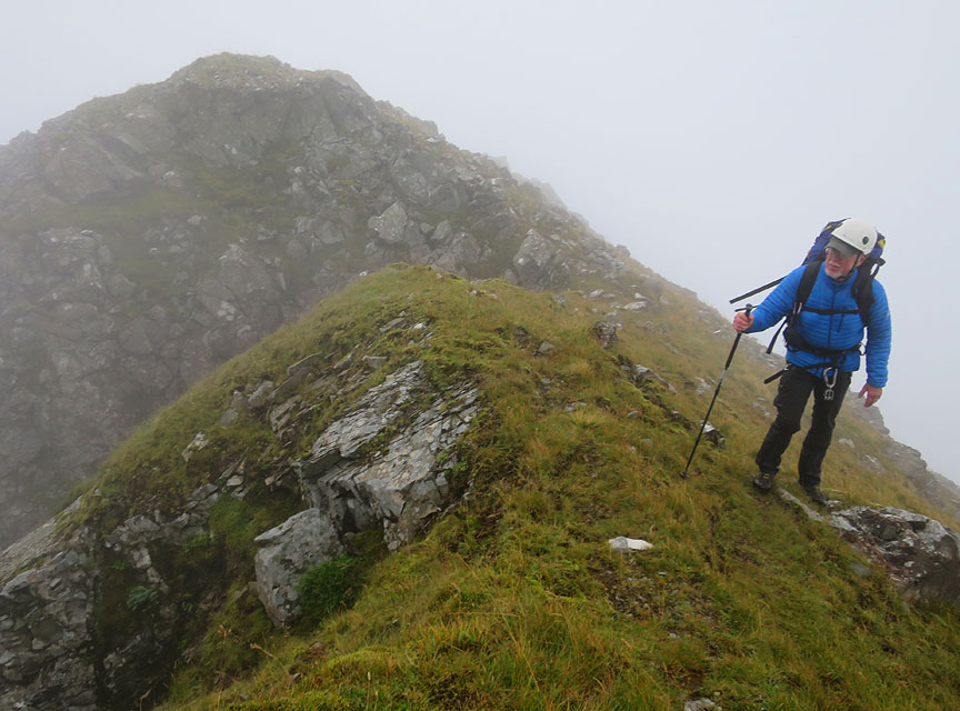 Andy high on the ridge traverse, on a rare sunny day. |