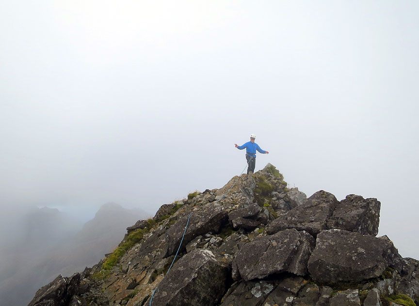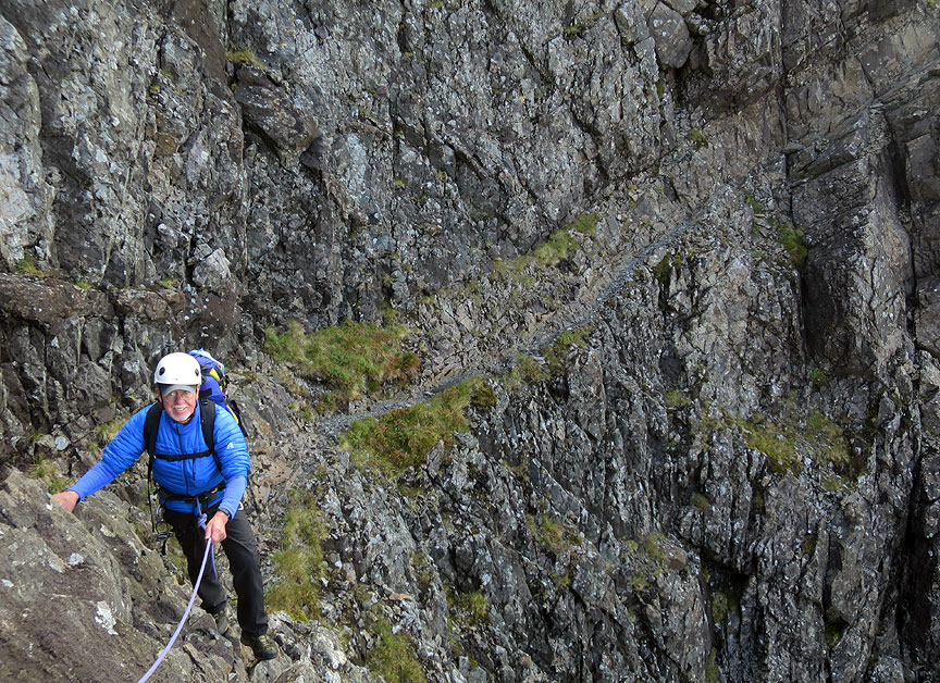 Andy on Collie's Ledge, on the Sgurr MhicCoinnich. |