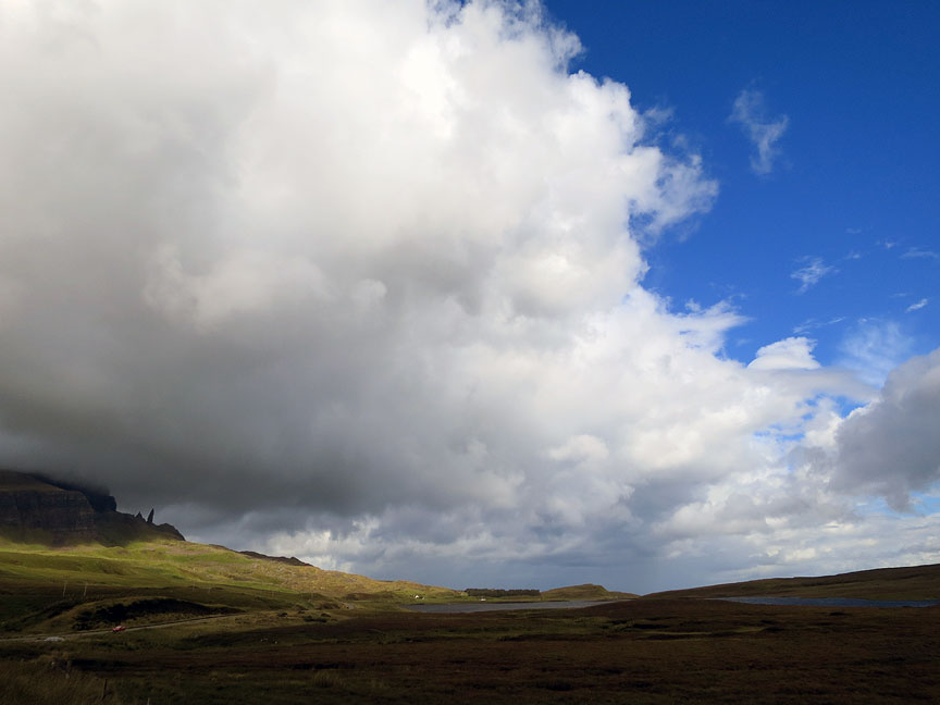 The next couple of days were spent sight-seeing all over the island in very mixed weather. The Old Man of Storr here as we drive north. |