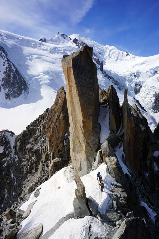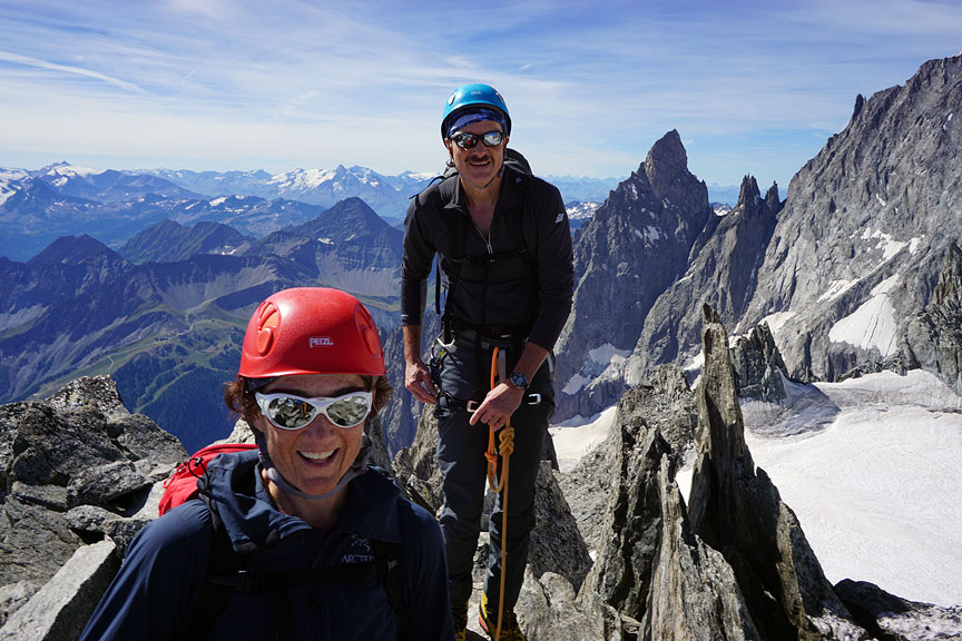Kathleen and Jim Soukup, from New Hampshire, made a quick visit to the Alps, climbing with Mark for four days in the Chamonix area. We began with a Traverse of the Aiguille d'Entrèves, on the Franco-Italian border. |