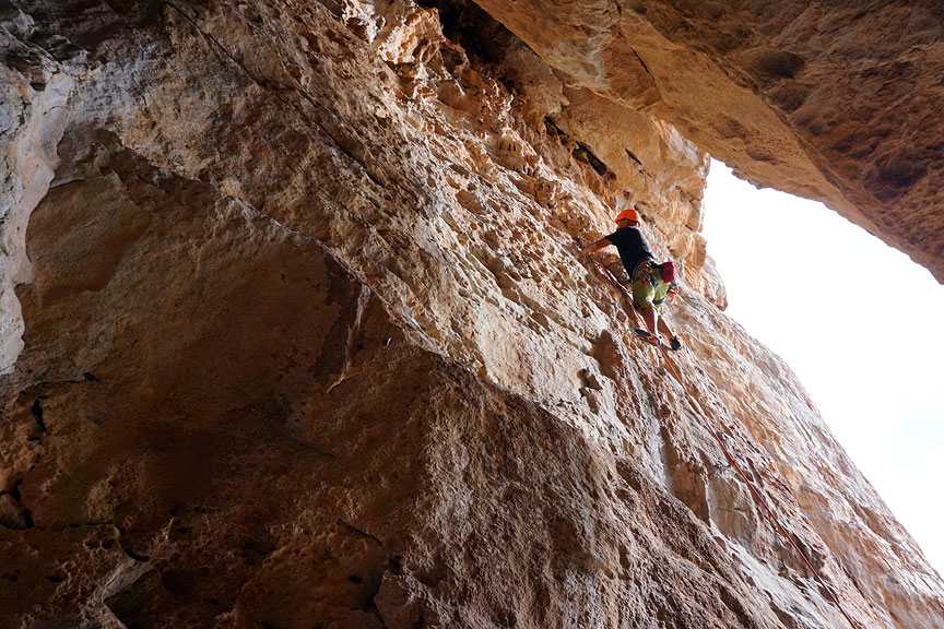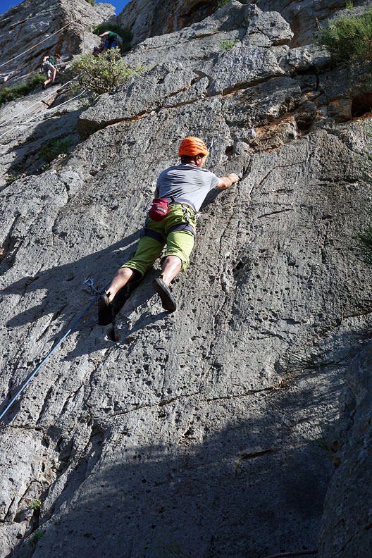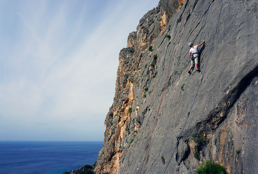 Mark on the first climb of the trip. The climbing here is mostly on single pitch sport routes, well protected, on amazing rock. According to the local guide book, Sicily Rock, there are about 1000 routes. |