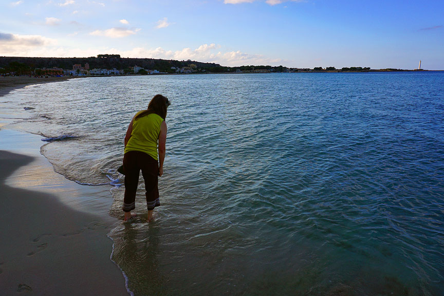 The beach at San Vito Lo Capo. Kathy gives the tootsies a wiggle. |