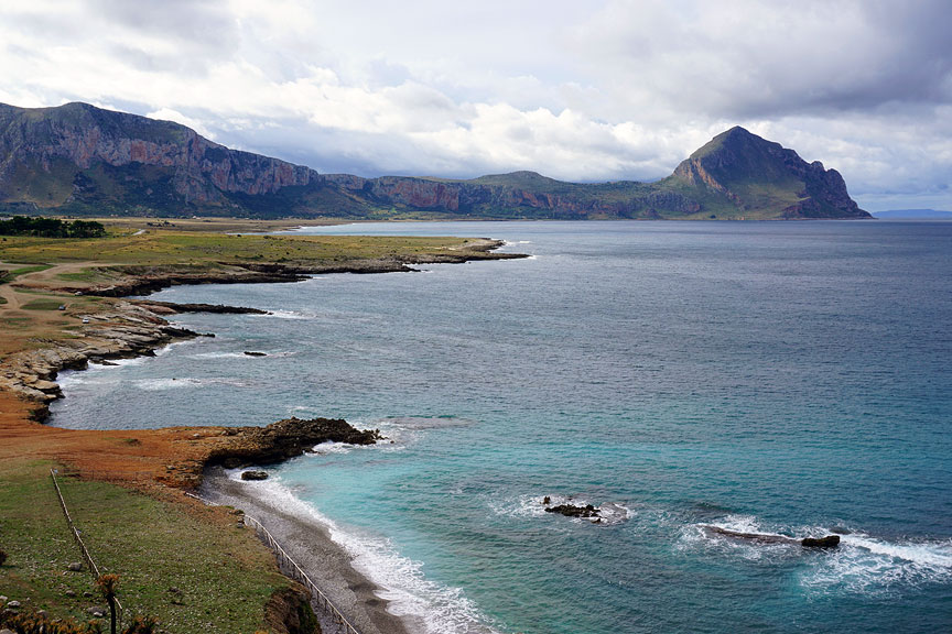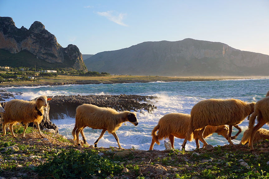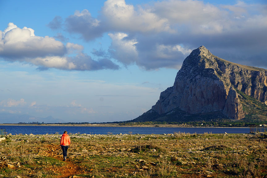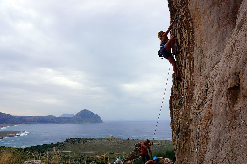 With the gentle prodding of our good friend and colleague, Kathy Murphy, we took a wee vacation to Sicily. Flying from Torino we landed in the thick, warm air of Trapani, on the western edge of the island. Our home for the next 10 days is in the little beach resort town of San Vito Lo Capo. Busy with tourists in the height of summer, at this time of year it was tranquil–locals and a few climbers were the norm. Kathy was still recovering from foot surgery, so no rock climbing for her, but the bare-foot walking on the warm sandy beaches was much like the physio massages she has been enjoying. |