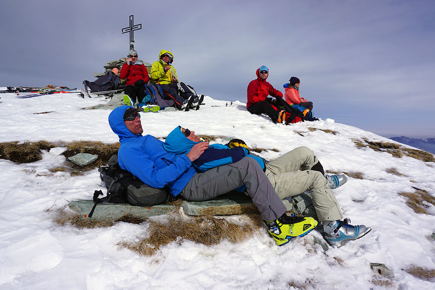 We spent a good amount of time on the top, waiting for the long SW-facing slope to soften up properly. And it was worth it! |