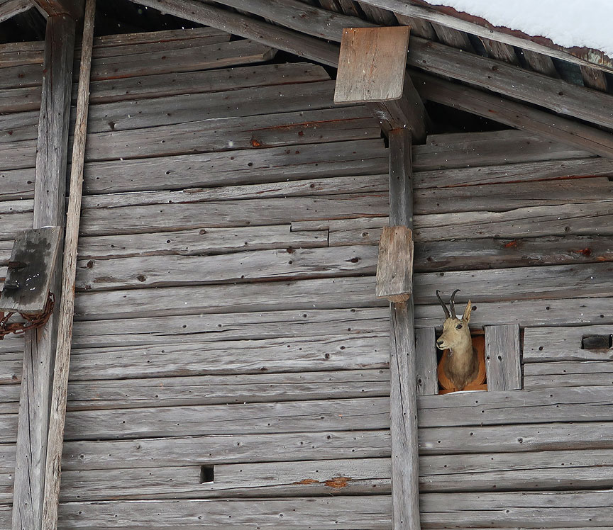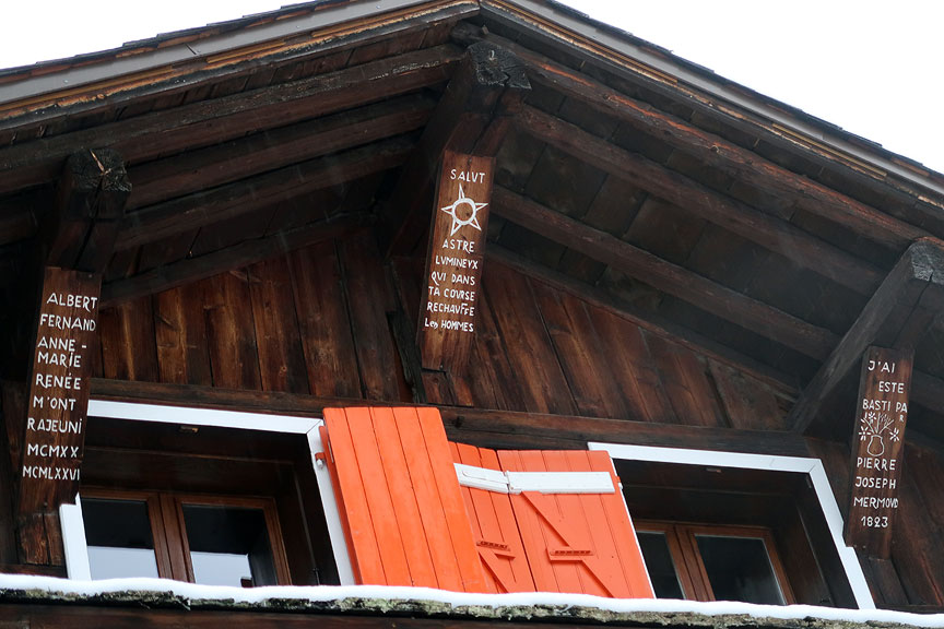 Further up, passing a group of farm buildings and old chalets, someone has a sense of humor. |