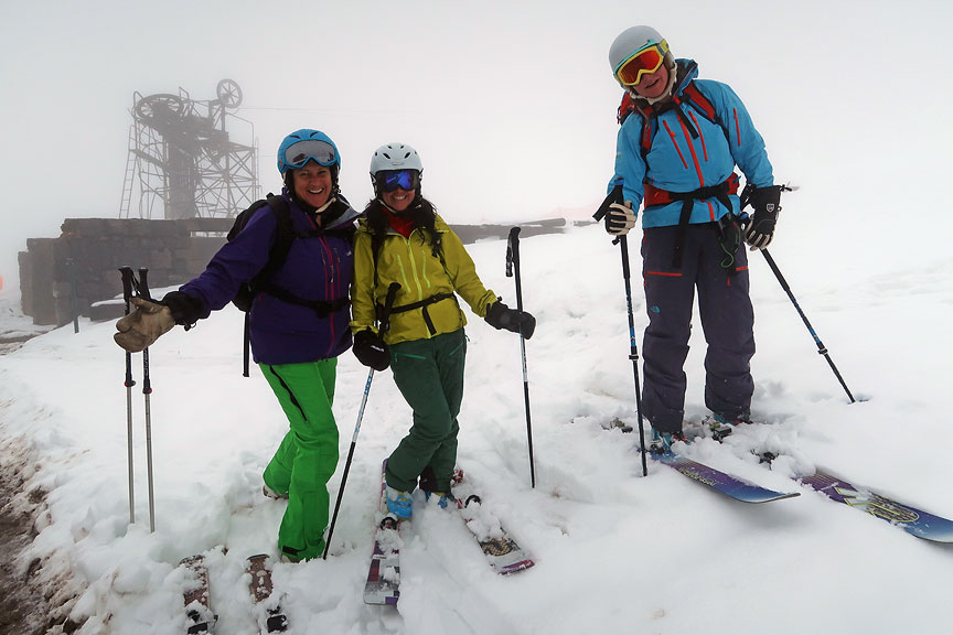 A bit later, the rain having turned to snow as we gained elevation, the smile is still there! |