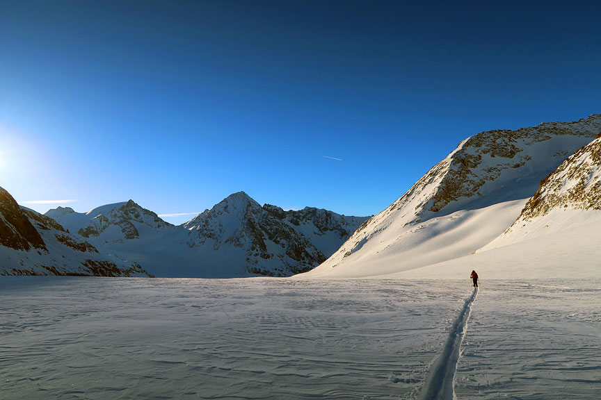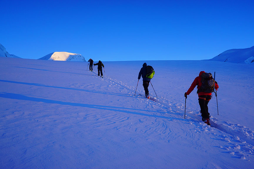 Heading up the glacier toward the Mittaghorn. |