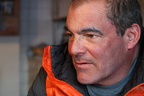 The following day was spent hut-bound, on crevasse extraction exercises, board games, and once the wind died and the sun appeared, helping to clear the hut terrace of the new fallen snow banks. |