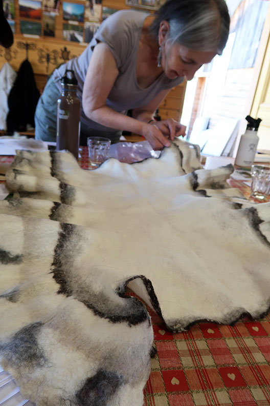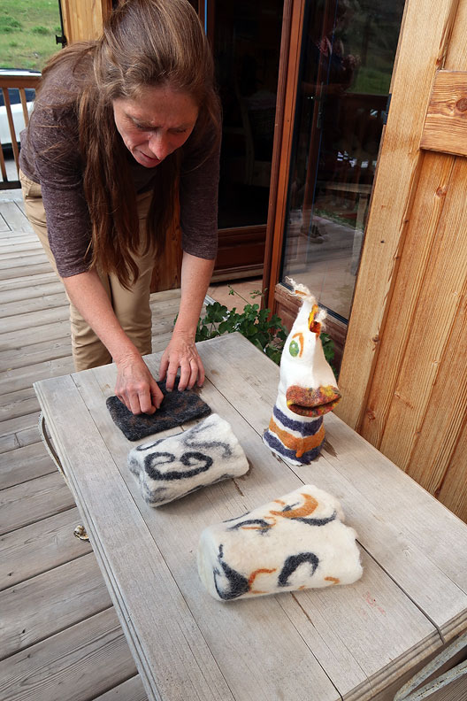 Day three, it's FELTING TIME! Deb gets her hands soapy. |